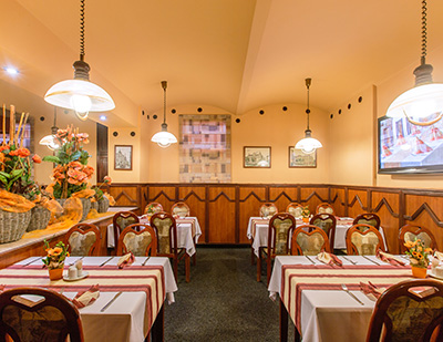 Stravovací služby hotelu zajišťuje klimatizovaná restaurace a bar s kapacitou 70ti osob.